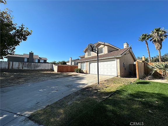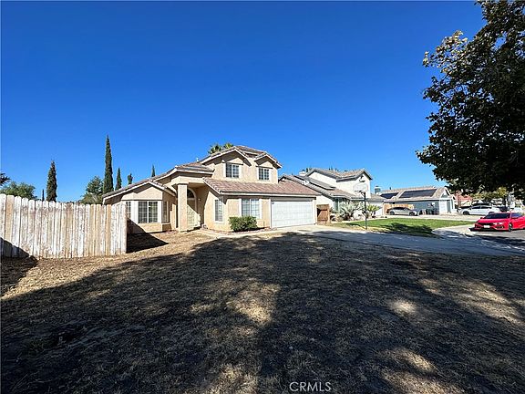 Wonderful Two Story Family Pool/Spa Home on Cul-de-Sac in Palmdale, Features 3 Bedrooms and 3 bathrooms, Covered Front Porch, Living Room, Dining Area, Family room with Fireplace, and Kitchen. The Kitchen has tiled flooring, newer style cabinets, countertop and appliances. Upstairs you will find the Bedrooms. The Master Bedroom has dual sinks, separate shower enclosure and mirrored closet doors. Great Backyard with patio area and private pool and spa. Plenty of room here to entertain. Attached Two Car garage with driveway. Close to shopping, schools and more.