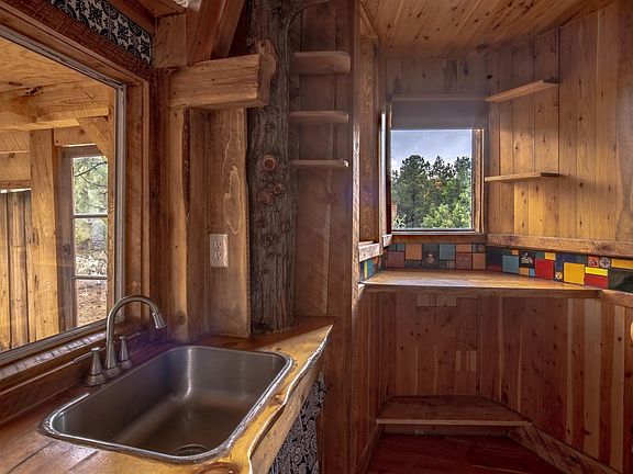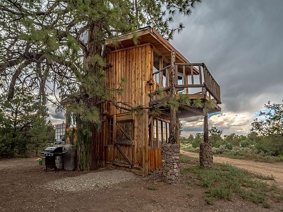 THIS PROPERTY IS ONLY AVAILABLE FOR SELLER FINANCING, AND AT INCREDIBLE TERMS! Please call for more details. Welcome to Raven’s Rock! This is a truly magical 28.9 acre retreat nestled into the stunning beauty of Northern New Mexico. Perched among ancient Ponderosa pines, Piñon and cedar trees, and sculptural rock formations, this one-of-a-kind, off-grid sanctuary includes a charming two-bedroom, one-bathroom cabin, an awe-inspiring guest treehouse, and a retro Airstream for additional space or creative use. Thoughtfully designed to blend into the hillside, the main home, approximately 1,800 square feet, offers stunning forest and mountain views from its expansive front deck. Inside, you’re greeted by a hand-crafted front door and rich wood floors that carry a sense of warmth and craftsmanship throughout. The eat-in kitchen features abundant storage, a walk-in pantry, and a gas range that is perfect for off-grid culinary adventures. The main house has a beautiful soapstone woodstove, and there is even a brand new one, that is still in its shipping container, ready to go into the treehouse. Both bedrooms are outfitted with custom-built beds offering generous under-bed storage, and the bathroom features a freestanding soaking tub with shower, brand-new composting toilet for added ecological sustainability, and access to a large closet/storage area. The home's impressive off-grid infrastructure includes a powerful solar system backed by eight supercharged batteries, discreetly housed in a rear utility room, along with a 1,600-gallon water catchment tank integrated into the home. This back room was built as an indoor green house with large South-facing windows, and it has an office area with built-in desk and shelves. The home’s plumbing is fully pressurized, and while the catchment system has proven more than sufficient, a well is believed to be feasible with water expected between 150–190 feet below the surface. The home is being sold partially furnished. Tucked into the trees, the spectacular guest treehouse is a destination, and it is completely solar-powered and filled with forest charm. This treehouse is nestled literally into an 80-foot Ponderosa tree and is a must-see build. Nearby, the 1963 Avion travel trailer adds a dash of nostalgic flair and versatility to the property, perfect for guests, studio space, or a quiet retreat. Can outhouses be magical? At Raven’s Rock, we believe they can. The property features two uniquely designed outhouses, each with its own unexpected charm. In addition to the main home and guest spaces, you'll find a thoughtfully designed workshop and storage building, with extra firewood and building materials neatly stashed behind, ready for your next creative project or homesteading task. A composting area behind the home supports your gardening ambitions, while thoughtfully placed benches throughout the property offer quiet spots for outdoor reflection, morning coffee, or sunset views. If all of this isn’t enough, there are wild horses seen roaming through the property regularly. The property offers many other opportunities for wildlife watching and hunting and affords incredible mountain views. Whether you’re seeking a sustainable homestead, an inspiring creative retreat, or simply a place to breathe deeply and reconnect with nature, Raven’s Rock is a rare and beautiful offering!!