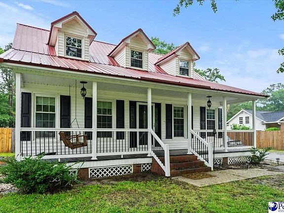 This spacious 2649 sq ft. 4-bedroom, 2-bath home sits on a beautifully maintained 0.7-acre lot and offers the perfect blend of comfort, functionality, and outdoor enjoyment. Nestled in a peaceful community setting (with no HOA!) this home features a large fenced backyard complete with a in-ground pool, relaxing hot tub, and a second sunken living room that offers views of it all—perfect for entertaining or cozy nights in. Enjoy morning coffee or evening sunsets on the oversized front porch, all under the durability and charm of a classic tin roof. Inside, you'll find generous living spaces, including a second living room ideal for a den, playroom, or media space. The kitchen and dining areas flow perfectly for family meals or gatherings. The primary suite is flexible, choose either upstairs or downstairs and have the convenience of an attached bath. Out back, a large workshop garage provides ample room for projects, hobbies, or storage. Whether you're looking to unwind or spread out, this property offers the perfect combination of peaceful South Florence living close enough to all the amenities you need but far enough away from the hustle and bustle of town.