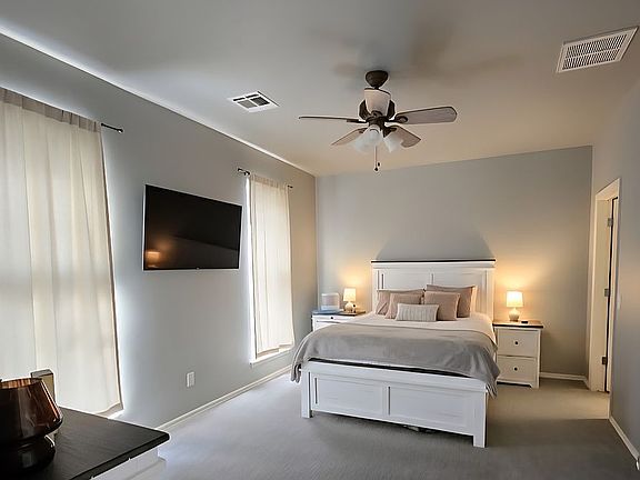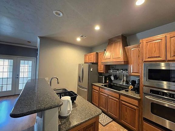 Beautiful 3 bedrooms, 3 full bath. Master bedroom with walk-in closet (jetted tub and separate shower) and another bedroom with full bath next to the room downstairs, one master bedroom upstairs with additional room for study/office. Wonderful tall ceilings open floor plan. low maintenance yard, Granite counters, lots of storage, and quiet cul-de-sac. New A/C and heating system. New carpets. New kitchen counters. New washer and dryer. New microwave. New refrigerator. New stove top. Sunroom. Laundry room. Walk-in pantry that can also be used as a tornado shelter. In a very luxurious area in the west Norman.