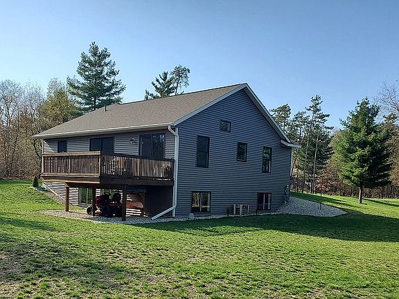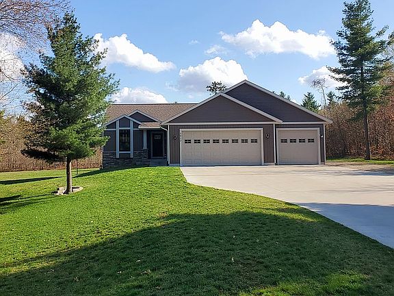 This charming 2 bedroom 2 full bath is a must see. If you are looking for a neighborhood with privacy you have found your place. This house was built in 2018. It sits on a corner lot on 2.7 acres completely surrounded by trees. You will find a 3 stall garage, with a work station. You will also have a 4th spot to park next to the house for toys, or another vehicles. Inside you will find a open kitchen, dinning room, and living room under a vaulted ceiling. Dinning room has a sliding door out to the deck that over looks the large private side yard and back yard. Main floor host the master bedroom with a private bathroom and walk in closet. The 2nd bedroom is also located on the main floor. Along with another full bathroom with a tub, that is also a combo laundry room. The lower level has a multitude of possibilities do to it being unfinished. You could add up to 3 more bedrooms or make it anyway you want. There is a spot for another full bathroom, that already has the plumbing in the floor ready to go. The basement also includes a walk in fire proof safe. No need to buy a safe when you have one built into your house. Additional features include newer appliances(2018), double hung windows that pop out for easy cleaning. The garage has insulated doors, hot and cold water, service door to the side yard, and 2 floor drains, which will come in handy when you clean your vehicles. This house offers much more. Come take a look, you don't want to miss out. Please text or call 616-886-2748 for any questions or for a showing.