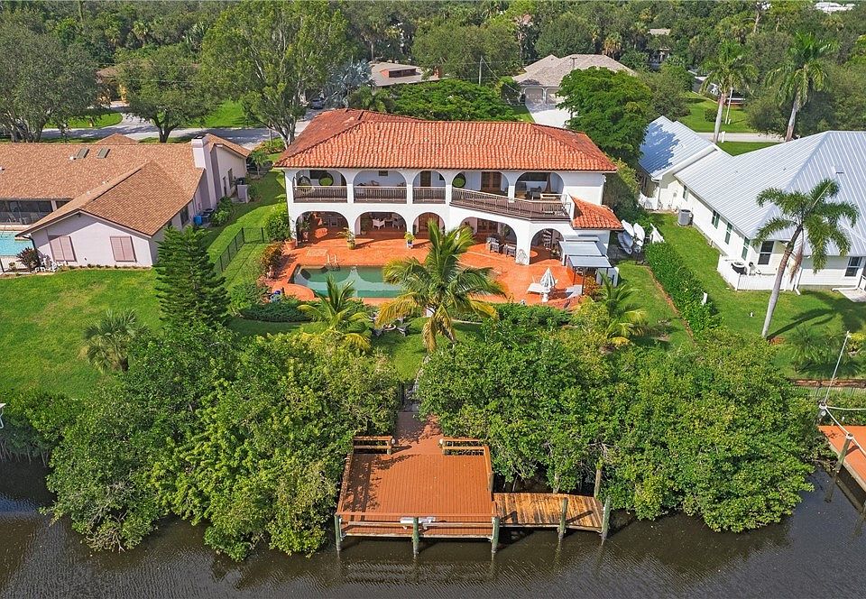 Step outside into your private resort-style retreat, where a custom-built Cantina, oversized heated pool and spa, and lush tropical landscaping create a setting perfect for relaxation and entertaining. Multiple covered patios and lounging areas, and a cozy firepit invite gatherings under the Florida sun or evening skies.