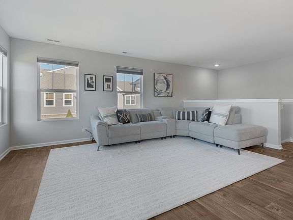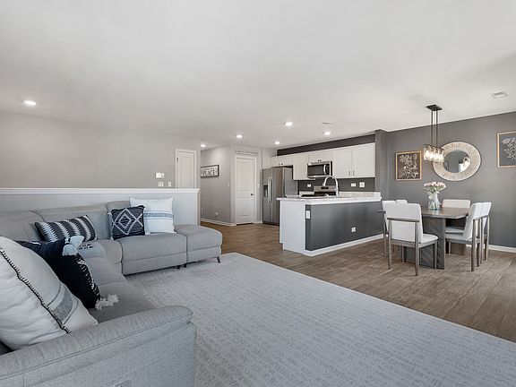 Stunning End-Unit Madison in Tall Oaks - Built in 2020! This modern and stylish townhome features 3 spacious bedrooms and 2 full bathrooms, offering plenty of space for comfortable living. Step inside to a bright and airy open-concept kitchen and living area, filled with tons of natural light. The gourmet kitchen features an abundance of beautiful white cabinetry, a closet pantry, and a walk-in pantry for plenty of storage space. Brand new kitchen faucet and dining area light fixture. Enjoy your morning coffee or unwind in the evening on the private balcony off the eating area. The finished English basement is perfect for guests or additional living space, featuring a bedroom, full bath and laundry room. Both bathrooms feature TOTO toilets and some custom shelves. All rooms have custom window treatments: either top-down/bottom-up or room darkening shades. The upstairs second bedroom closet features custom built-ins. The oversized 2-car garage has a newly epoxied floor, and easily accommodates two vehicles, with extra storage space to spare. This home is packed with modern conveniences, including built-in smart technology, energy-efficient features, and a tankless water heater. Situated directly adjacent to open green space, a dog park, and a pond for you to enjoy peaceful scenic views. Perfectly located near restaurants, shopping, I-90 and the Metra station-close enough for convenience, yet far enough for tranquility. This is the best unit in the subdivision!