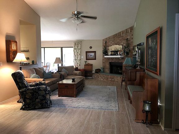55+ Completely updated including, 42" lighted, glass accented cabinets, vanities, granite, tiled floors, panel doors, tilt/insulated windows, 40 yr. roof, water heater, AC, drive, walkway, insulation. Has 7 closets, walk-in pantry, wood-burning fireplace, wet bar, 34X10 screen room w/custom shades. Amenities include 24/7 live guard, lodge, pool, hot tub, cards, hobby room, billiards, ballroom, kitchen, free RV/Boat storage, paths, community maintained yard including sprinkler, mowing, water and chemicals.