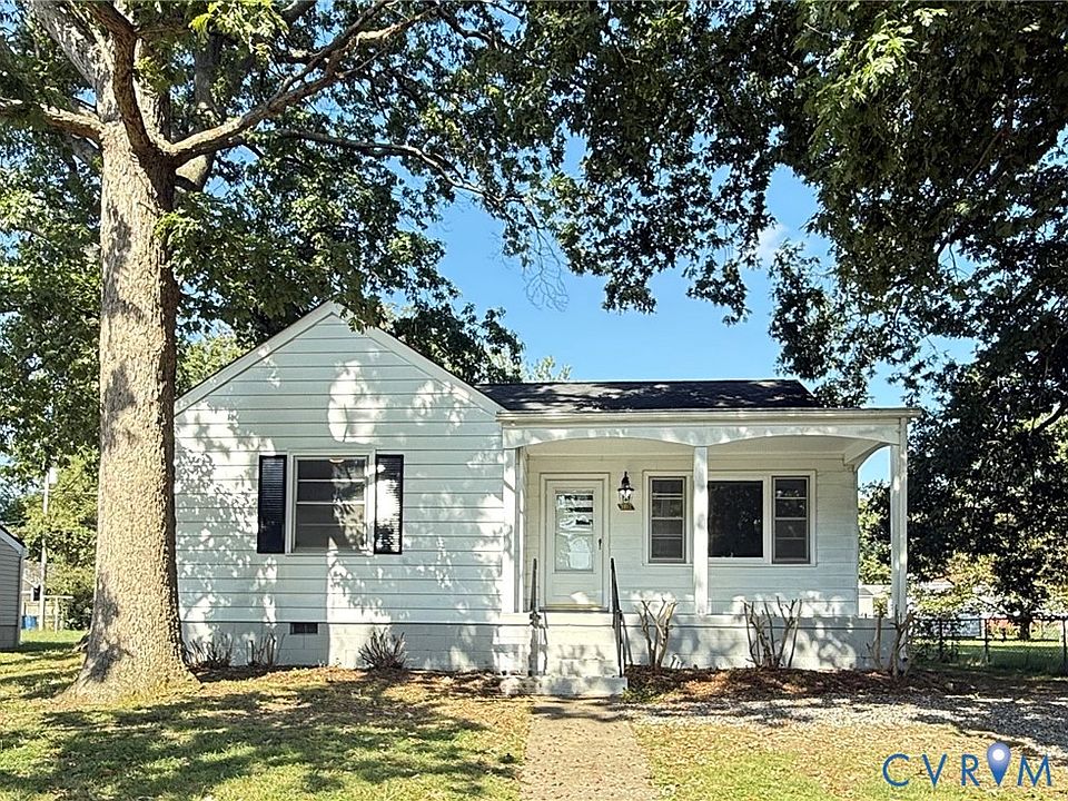 Step inside and enjoy the character of this home with its refinished original hardwood flooring in the living room and bedrooms. The arched interior doorways bring timeless charm, while a covered front porch offers the perfect spot to relax. Updates include a newer roof (2023), new bathroom vanity and sink, and new laminate kitchen countertops with a new kitchen sink. A convenient laundry/mudroom sits at the back of the home, complete with a Maytag dryerand Speed Queen washer included. Bedrooms feature double-deep closets for plenty of storage. All this in a prime location just minutes to shopping, restaurants, and major highways (295 & 64), and only a short drive to Downtown Richmond.