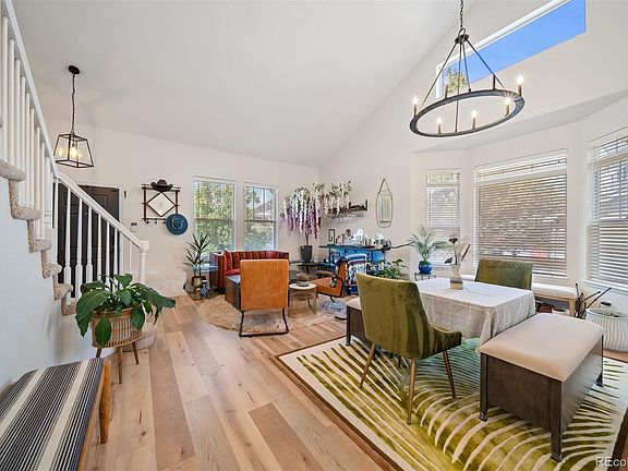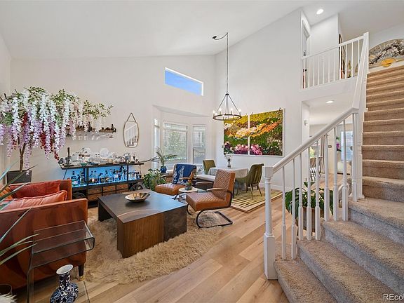 Beautiful two-story home in Saddle Rock Highlands, located in the award-winning Cherry Creek School District. This spacious property offers over 3,600 square feet with 5 bedrooms, 3 full bathrooms, and a 3-car garage. The open floor plan features vaulted ceilings, beautiful LVP flooring, ceiling fans, gas fireplace, formal living/dining room and a separate family room. The updated kitchen includes quartz counters, a large center island, stainless steel appliances, gas cooktop, and plenty of cabinet space, flowing into the family room with a cozy gas fireplace. The primary suite has a five-piece bath and walk-in closet, while a main-level bedroom and full bath provide excellent guest or office space. Solar panels are already installed, providing the benefit of low or even no monthly electric bills.