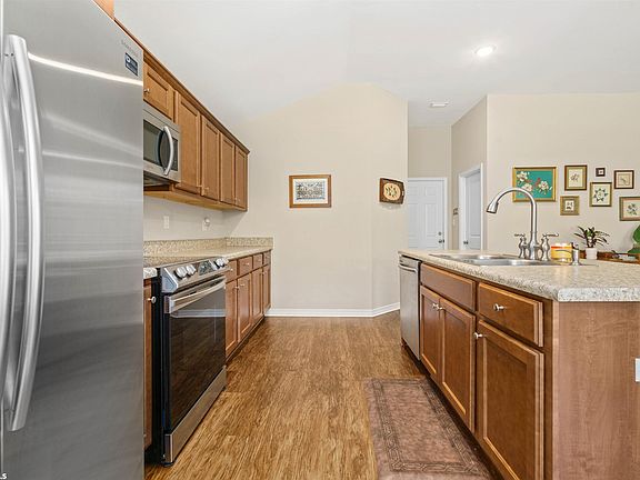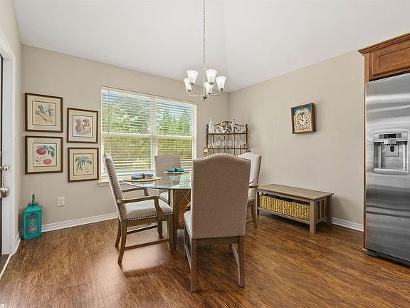 Better than new Truland-built Gold Fortified home, move-in ready, featuring an open floor plan with 10-foot ceilings in the living, kitchen, and breakfast room areas. The seller has added extra cabinets to the kitchen for lots of storage, and a new electric smooth top range. This home is a perfect home for entertaining that includes a covered back porch with room for your rocking chairs, a gas hook-up for your gas grill and a water fountain with a spacious yard that backs up to woods full of birds and wildlife. The master bedroom suite is truly a sanctuary to relax after a hard day at work, featuring a walk-in closet double vanity. The extra bedrooms are roomy with large closets and a guest bath with a handicap entry tub. Home includes tankless water heater for your convenience. Plus a two-car garage with automatic garage door openers. Added bonus is the low, low, utility bills.