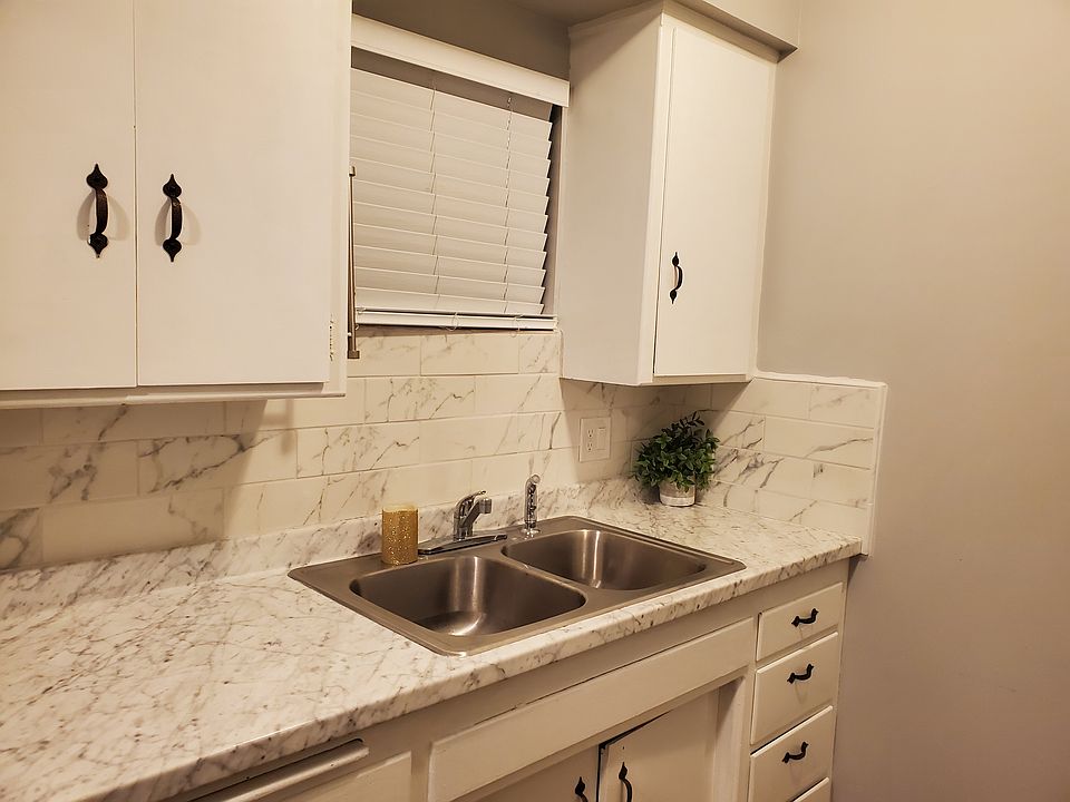 1 bedroom 1 bathroom apartment, single story. New kitchen, new batroom flooring. Single story unit. caccross the street from park with a pool. Close to freeway, library, shopping, schools, banks, gas stations, markets, restaurants, public transportation. Central to everything! Includes covered parking for 1 car, and extra storage in parking area, plenty of parking on street. owner pays water and garbage. includes 1 covered parking and storage cabinets in parking area.