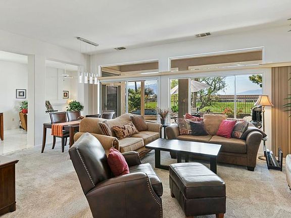 Bright, airy, and impeccably maintained--THIS ONE WON'T LAST! Situated in the sought-after Sun City Palm Desert 55+ Active Lifestyle Community, this highly desirable BACCARAT Floor Plan offers 1,836 sq. ft. of thoughtfully designed living space. It features a spacious living room, a separate cozy breakfast nook and den, along with two well-appointed bedrooms that provide excellent privacy. Enjoy the convenience of being near the front gate while still benefiting from a quiet, low-traffic location.The home's fantastic curb appeal is enhanced by a GATED and PRIVATE front courtyard, an ideal space for sunbathing or enjoying a morning coffee while watching the gorgeous Eastern sunrise. Once inside the home, a WALL OF GLASS in the Living Room fills the space with natural light, seamlessly blending indoor and outdoor living. This home has been tastefully UPGRADED, blending MODERN Enhancements with timeless charm. Recent updates include a kitchen remodel (2022) featuring stainless steel appliances, elegant quartz countertops, a new stove, and hood vents. Additional improvements include a NEW Washer and Dryer (2023), a NEW AC unit (installed Fall 2024), a NEW Spa Pump (Spring 2023), a NEW Spa Heater (Fall 2022), and Fresh Carpeting throughout the home (2021), ensuring both comfort and efficiency. For added functionality, the Utility Room was CONVERTED into an office, and the washer and dryer are conveniently located in the garage.The Primary Suite (Master Bedroom) features a bay window, direct patio access, dual sinks, an oval soaking tub, and a walk-in shower. The cozy den offers tranquil views of the fireplace, patio, and greenbelt, making it a perfect retreat or perfect place to read a book or take a refreshing nap.The West-Facing backyard is a tranquil retreat, perched above a lush greenbelt, offering the perfect setting to unwind and take in stunning desert sunsets. Relax in your private spa with a soothing water feature, all while enjoying serene mountain and greenbelt views.The home is close to the Lakeview Clubhouse (there are a total of 3 in the community) The community is close to the Acrisure Arena, dining, shopping, recreation, and entertainment. Don't miss your chance to own a piece of the desert lifestyle in Sun City Palm Desert!
