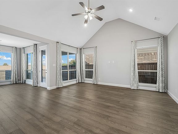 Single-story comfort meets thoughtful design in this beautifully maintained home located in the highly desired Light Farms community of Celina. Fresh interior updates, this property offers both style & convenience. A brick-and-stone elevation with neat landscaping sets the tone. Inside, a long foyer with engineered wood flooring leads to an open layout. Two spacious secondary bedrooms offer carpet, walk-in closets, and easy access to a full bath. The dedicated study features new carpet, & French doors—ideal for work. The main living area impresses with a vaulted ceiling, abundant natural light, & seamless flow into the dining area & kitchen. The kitchen is well-appointed with a central island, breakfast bar, granite countertops, gas cooktop, built-in appliances, walk-in pantry, and generous cabinet storage. Adjacent dining space overlooks the backyard, creating an inviting setting for daily meals or entertaining. Both the living room & dining area include engineered wood flooring for a warm, cohesive feel. The private primary suite offers backyard views and a spacious ensuite bath complete with dual sinks, soaking tub, separate glass shower, and a well-designed walk-in closet with built-ins. A standout feature of this home is the backyard, a perfect blend of relaxation and function. Enjoy an extended covered patio with ceiling fan, a custom stone outdoor kitchen with gas grill, a pebble walkway, and a grassy area framed by a see-through fence that showcases unobstructed sunset views & peaceful greenbelt scenery. Additional highlights include fresh paint, new carpet in the office, upgraded window coverings throughout, a large utility room with storage & garage access, & a 3-car tandem garage with attic access. Just a short walk from Light Farms Elementary, the home also enjoys close proximity to the neighborhood’s premier amenities including multiple pools, fitness center, tennis, pickleball, & basketball courts, miles of trails, parks, & an on-site restaurant.