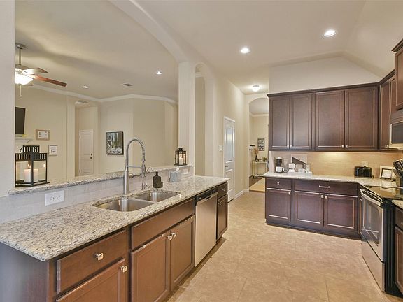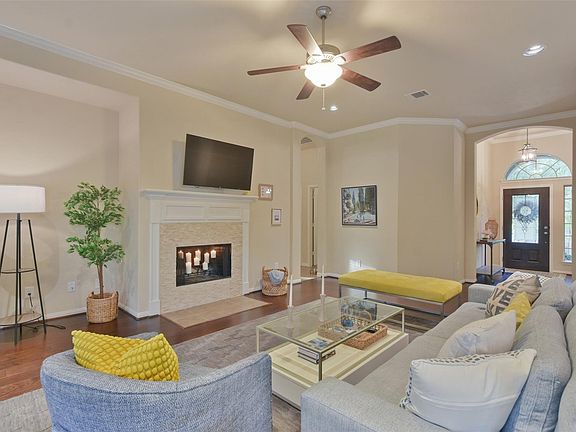 Located at the end of a quiet cul-de-sac in Walden on Lake Conroe, this single-story brick home offers a large fenced backyard and covered patio with ceiling fan and porch swing. Sold fully furnished, it features recent interior paint, new window treatments, modern light fixtures, and a smart-home package with Wi-Fi–enabled door lock, wireless thermostat, and smart sprinkler system. The open kitchen includes granite counters, 42-inch cabinets, and a breakfast area that flows into the family room. Entertainment ready with an open floorplan and formal dining room. Enjoy nearby recreation—walk to the community park or boat ramp, or drive minutes to Walden Golf Club, tennis and pickleball courts, pool, and Lake Conroe amenities.