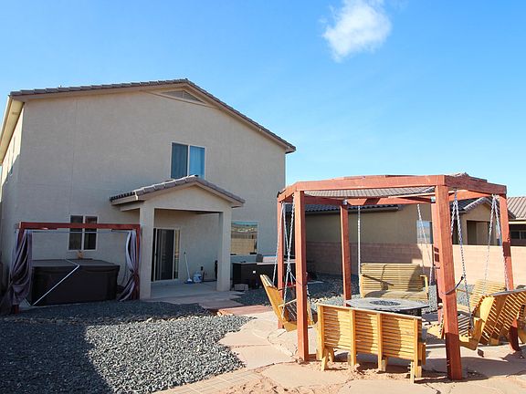 A rare find in the Lomas Encantada area of Enchanted Hills!4 Bedrooms plus an Office, updated flooring, granite counter tops, stainless steel Frigidaire appliances, pantry, under stair storage, extra living space upstairs with a huge master bedroom suite, private balcony off the master bedroom, expansive walk-in closet, 2 heating and cooling units. This tastefully updated home blends indoor and outdoor living space with a functional outdoor kitchen, covered and open patio spaces, gazebo with propane fire pit, and a hot tub to enjoy the high desert evenings! The downstairs office is perfect for those able to work from home! Great Privacy with this home backing up to the open space of the area! Easy access to 528 and all the neighborhood affords! Make an appointment to view this home today