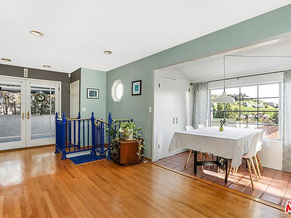 This handsome Traditional in Glassell Park enjoys wonderful outdoor space and sweeping views. The living room features elegant built-ins, a brick fireplace and beautiful wood flooring. Dining is framed by a picture window with hillside vistas and there is seamless patio access, an idyllic perch for al fresco soirees. Finished with blonde cabinetry, tile countertops and Saltillo floors, the kitchen is outfitted with a pro-grade stove and stainless appliances. Three bedrooms include the ensuite Master; the second bath features a clawfoot tub by Kohler. A spiral staircase leads to bonus space, perfect for an office or work studio. The grassy terraced yard provides options for entertaining, gardening and fruit picking while taking in hillside views and fireworks over Dodger Stadium. Amenities include central heat+air, a laundry room and garage. Access is easy to nearby dining and conveniences including Habitat Coffee, Lemon Poppy Kitchen, Little Ripper, Market Target, Urban Pet and more.