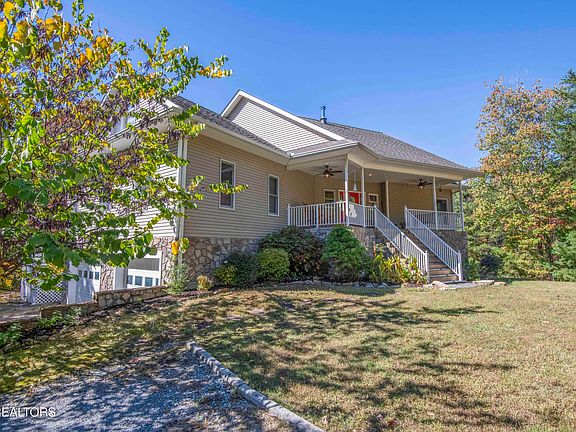 Nestled in the serene embrace of East Tennessee's Smoky Mountains, this private 6+ acre retreat offers unparalleled peace and quiet, with faint rustles of wildlife scurrying about. This handicap-accessible home, thoughtfully designed with an elevator servicing the main floor and basement, boasts a spacious layout perfect for relaxation and entertaining. The heart of the home is its gourmet kitchen, featuring a professional 6-burner gas stove, island with second sink, and custom dovetail cabinetry, bathed in abundant natural light. The master en-suite is a true sanctuary, complete with a generous walk-in closet, jacuzzi tub, large walk-in shower, and a double vanity with a dedicated makeup area. A split bedroom plan ensures privacy, while a nice-sized second-floor bonus room offers a versatile space for work, play or controlled storage. With trayed ceilings, and wood burning stove, the living room welcomes you with its cozy embrace. Step outside to the oversized deck (half screened), where seasonal Smoky Mountain views create a breathtaking backdrop. The property also features a stacked stone fire pit with pavers, jetted hot tub, and a camper pad with 30-amp connection, water, and septic accessibility—perfect for outdoor enthusiasts. A hobby shop and extra-large mudroom add practicality making it a rare gem for those seeking a private mountain haven with every modern convenience.