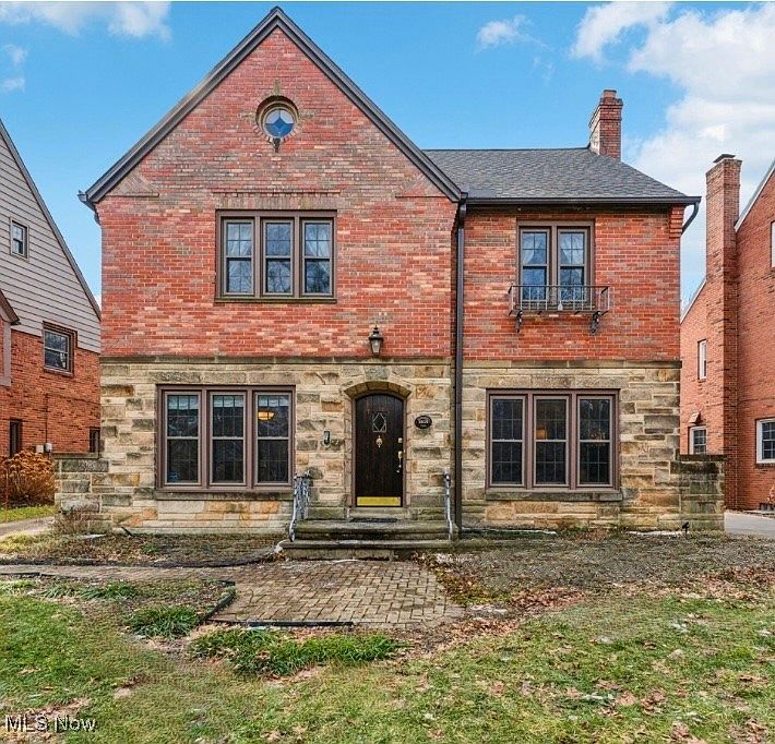 Stunning brick and stone Tudor-style colonial blending classic architectural charm with modern updates. This elegant home has an expansive first floor that features a 21x14 living room anchored by a handsome gas fireplace and crown moldings; a formal dining room with wainscotting detail; a chef’s kitchen showcasing custom white cabinetry, sleek black granite countertops, and stainless steel appliances; a sunlit garden/breakfast room just off the kitchen and a beautifully paneled a library/office that overlooks the landscaped backyard. Convenient mudroom leads to the side entrance for everyday ease. Both the 1st and 2nd floors have gleaming hardwood floors and replacement windows on all 3 floors. The second floor offers four spacious bedrooms and two full baths, including a luxurious owner’s suite with a vaulted ceiling, dual closets, and a beautifully remodeled ensuite bath (2023). The third floor offers even more flexibility with space for a fifth bedroom, yoga retreat, or home office, complete with its own full bath and remote storage. The lower level extends the living space, featuring a 30x13 recreation/flex area, a half bath, plus a utility and laundry room. The backyard oasis features extensive native plant landscaping, a custom hardscape patio with a built-in firepit, privacy fencing, cement driveway and a two-car garage. Improvements of note: HVAC installed in 2023, water softener installed 2020, reverse osmosis drinking H2O system added to 2nd sink in kitchen. Nestled on a highly sought-after street, this home is just minutes to local universities, shopping, dining, area hospitals and University Circle's cultural hub, making it the perfect blend of charm, convenience, and comfort. Property will be UHts POS compliant at transfer. Don’t miss your chance to own this one-of-a-kind Tudor gem in the heart of University Heights!