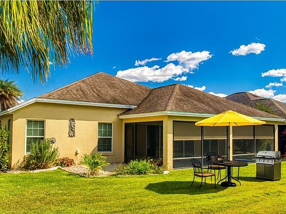 One or more photo(s) has been virtually staged. Bring Your Vision to Life! Welcome to your 3/2 LANTANA model home in the highly sought-after Village of Hillsborough — just minutes from Brownwood Paddock Square, where you’ll enjoy shopping, dining, and nightly entertainment! EXPANSIVE PRIVATE backyard with plenty of room for a POOL! And wait until you see the garage -- EXPANDED TANDEM large enough to hold 2 cars and 2 golf carts!! This charming home is priced with your personal touch in mind. It needs a bit of TLC — think fresh paint and new flooring — giving you the freedom to customize and remodel to your own style. Major systems including the roof, A/C, and water heater are in their original condition, and the seller is including a 2-year home warranty for added peace of mind. Step inside to a bright, open-concept floor plan that’s perfect for entertaining or relaxing. The spacious kitchen features STAINLESS appliances with a convenient electric cooktop, WALL OVEN, and large double door PANTRY! The washer and dryer (just a few years old) convey with the home. The primary suite offers dual sinks, a Roman shower, and a large walk-in closet — your own private retreat. You'll love the large lanai with stack-back sliding glass doors and a peaceful VIEW of the amazing backyard! Situated in one of the most desirable areas of The Villages, this home is conveniently close to Hillsborough, Bradenton, and Manatee Villages; Eisenhower Regional Recreation Center; executive golf courses; and Colony Shopping Plaza — offering everything you need just minutes away. Don’t miss this opportunity to make this Lantana your dream home! Call today to schedule your private showing or virtual tour.