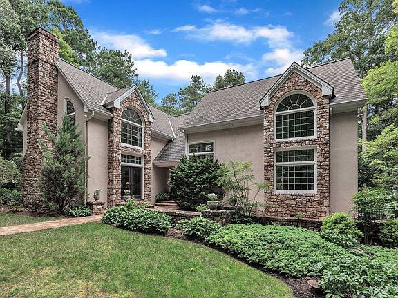 Step into luxury at 3814 High Meadow Rd, where soaring vaulted ceilings and expansive windows welcome you with soft, natural light in nearly every corner, lending the home an inviting and tranquil ambiance. The updated chef's kitchen flows effortlessly into a comfortable family room—perfect for entertaining or relaxed evenings. With three bedrooms (including a gracious first-floor primary suite), 3.5 baths, two cozy fireplaces, a bonus room with closet, and an abundant amount of privacy, this home radiates warmth and sophistication while offering modern convenience. Outside, nature and luxury converge on nearly two acres that backs to a large pond. With its meticulously landscaped grounds and peaceful sounds of nature, this has all the best the outdoors has to offer. Picture yourself swimming in the heated saltwater pool or a dip in the hot tub while entertaining guests on tiered decks. This home combines timeless elegance with contemporary comfort, creating a private retreat in an idyllic setting. Located in the desirable Windy Hill Farm enclave of Chapel Hill, this exclusive home offers both privacy and access to the best of the Triangle. Situated just minutes from dining, shopping, entertainment, and community gatherings, residents enjoy seamless access to daily conveniences in a pedestrian-friendly environment. Chapel Hill's vibrant downtown, the University of North Carolina, and Research Triangle Park are all within easy reach. This property is anchored at the end of a quiet cul-de-sac, and offers serene surroundings with walking trails and natural beauty just beyond your doorstep!