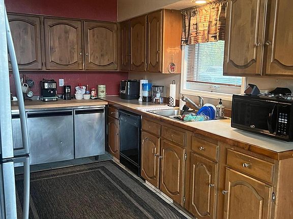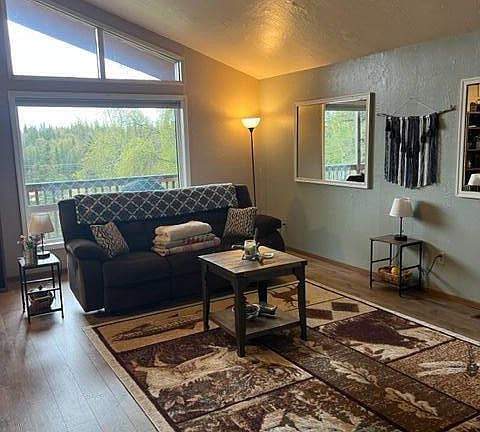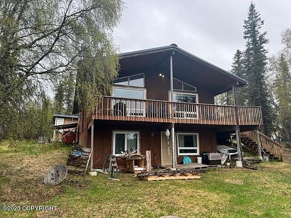 Single family or a duplex depends on what you want to do. 2 bedrooms upstairs and 1 with a large storage area downstairs. Both levels have full baths and full kitchen with open dining/living areas. Beautiful views of the creek valley and access to the snow machine trails. Large deck, steam and storage buildings.