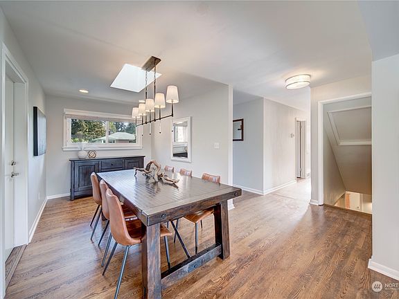 Well Done, Wedgwood. You produced another tastefully updated midcentury home boasting ample room to roam. Graced w/ rich original HW floors on the main floor that weave seamlessly throughout the 3 main floor bedrooms. Open concept living room w/ gas FP leads to the updated kitch w/ SS apps, Miele gas range, quartz counters, eat-in bar space, & adjacent dining room. Exit the kitchen to huge composite deck w/ tons of natural light. Down the hall are 2 beds, a full bath, & primary bedroom w/ 3/4 bath. The lower level has another bed, 3/4 bath, den space, & massive laundry space. Want more? Another large living space w/ gas FP. Tons of storage for all your toys. Yard space w/ turf & fruit trees round out yet another amazing NE Seattle home.