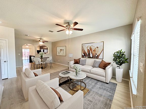 Charming 2-bedroom, 2-bath home offering a perfect blend of comfort and low-maintenance living. Step inside to find light laminate flooring & neutral paint throughout, creating a bright & inviting atmosphere. The island kitchen is complete w/ granite countertops, rich dark cabinetry, & stainless steel appliances. Open to the family room, it's ideal for everyday living or entertaining. Just off the kitchen, a covered patio w/ an extended wooden deck provides the perfect space to relax or host gatherings. The primary suite is privately tucked away & features an en suite bathroom w/ a double vanity, garden tub, walk-in shower, & large walk-in closet. A secondary bedroom & full bath are split from the primary, offering comfort & flexibility for family, guests, or a home office. Enjoy the convenience of an HOA that maintains the front yard to including sprinklers, mowing, & fertilizing!