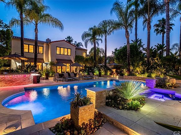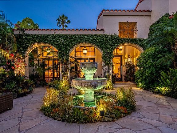 Stunning resort-style estate in the exclusive, highly desirable, Calabasas guard-gated community of The Ridge! The home welcomes you into your own private front entry courtyard leading into the formal entry. Inside the home's features Limestone and wood floors. The bright and open living room includes high vaulted ceilings, custom plantation shutters, and a lovely fireplace. The beautifully updated kitchen features a large center island with granite countertops, Stainless Steel appliances, large pantry, and Sub-Zero refrigerator. Just across the kitchen is the spacious and inviting family room with custom corner unit, fireplace, and wet bar. The windows throughout have all been updated, allowing enjoyable views of the home's stunning exterior landscape design. The home's spacious and resort-style backyard features hand-laid travertine stone around the custom pebble sheen pool and spa. In addition, there is an outdoor lounging area with fireplace, meditation area, and custom lighting. The custom-built bbq area, and beautifully designed backyard are perfect for entertaining.