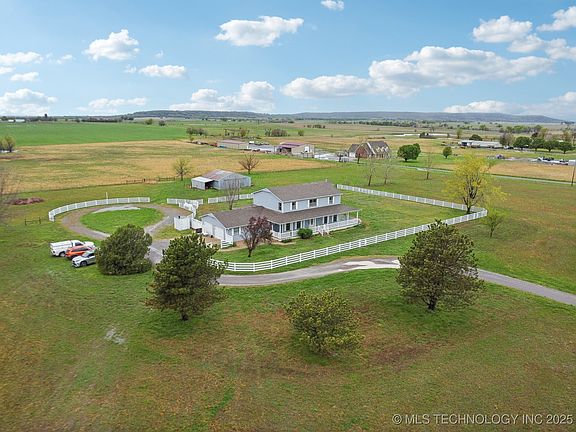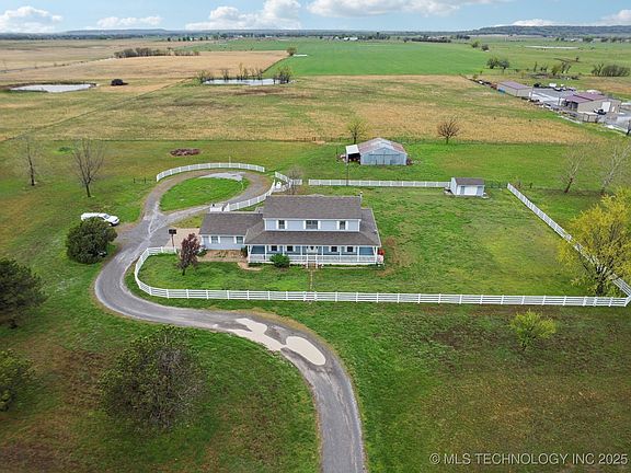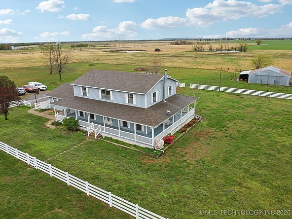 This beautiful home bursting with country charm offers horse amenities, a finished tanning & garden shed & a finished 2.5 car garage all w/HVAC. There is also an above ground storm shelter & a magnificent, gated 1000 sqft wrap around porch. Property is being sold as-is.