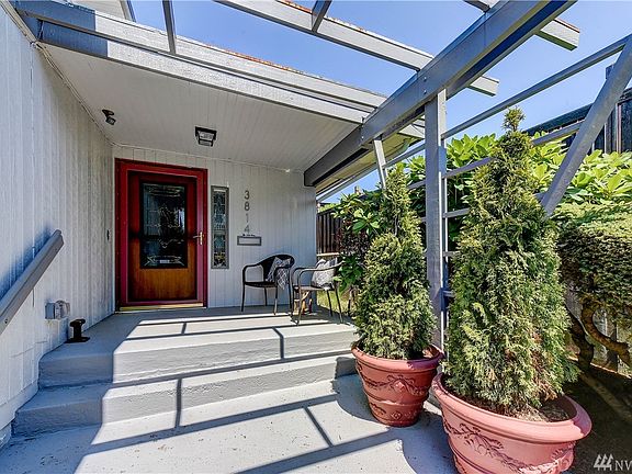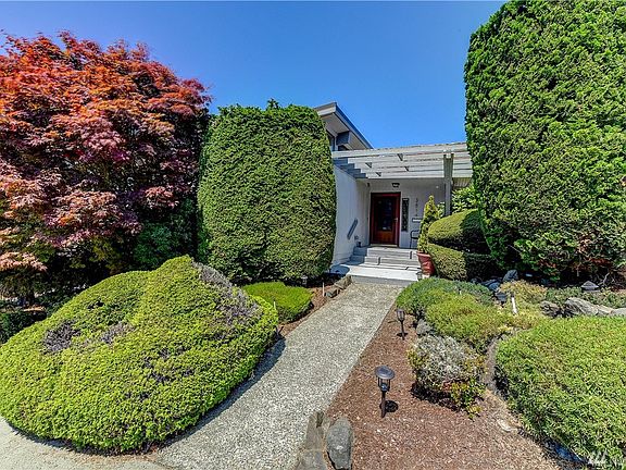 Majestic Sound and Mountain views from main living area. Underground wiring, no wires in the view. Large picture windows fill home with natural light. Inviting circular floor plan with deck access from dining area. Remodeled kitchen with tiled back splash, stainless appliances & granite counters. Many upgrades include new lighting throughout, sunshades & cordless blinds, roof membrane, upstairs flooring, exterior painted in 2019. House to the west is at height limit. Few blocks to bus/rapid ride