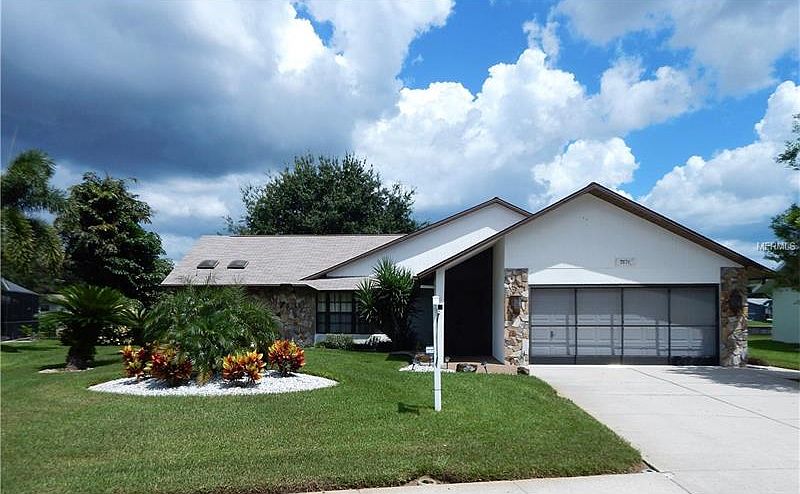 BEAUTIFUL HOME WITH EXCELLENT DUAL LAKEVIEWS. UNIQUE LOT OFFERS 3/4 ACRE +/- OF WATERFRONT WITH CENTER ISLAND AS PART OF THE PROPERTY AND PROVIDING VIEWS OF BOTH BODIES OF WATER. LARGE EAT IN KITCHEN WITH BREAKFAST BAR LOOKS ONTO FAMILY ROOM. SPLIT BEDROOM PLAN WITH MASTER ON THE LEFT, SLIDING DOORS LEAD TO SCREENED LANAI AND GREAT VIEWS. WALK IN CLOSET + 2ND CLOSET, DOUBLE SINKS AND SHOWER PLUS DUAL SKYLIGHTS. VERY ATTRACTIVE LIVING ROOM WITH CATHEDRAL CEILINGS, BAY WINDOW AND WOOD LAMINATE FLOORS. ELEGANT DINING ROOM WITH TRAY CEILING, WOOD LAMINATE FLOORING AND BAY WINDOW. OWNER HAS TAKEN VERY GOOD CARE OF THIS HOME FROM THE TROPICAL LANDSCAPING + LAWN WHICH ARE BOTH WATERED FROM THE LAKE - THIS SAVES LOTS OF $$ FOR THIS LARGE LOT TO THE BIG TICKET ITEMS SUCH AS AC 2014, SHINGLE ROOF 2010, FLAT ROOF 2011. INSIDE LAUNDRY WITH WASHER/DRYER AND SINK. MANY EXTRAS HERE. . We have a new elevation certificate