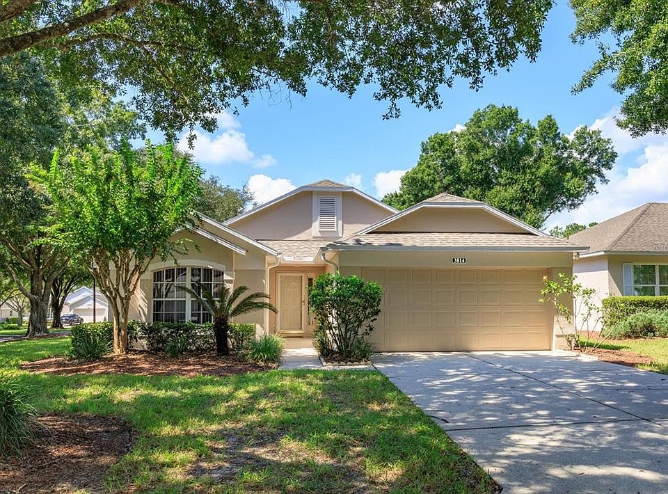 One or more photo(s) has been virtually staged. 'JUST UPDATED with New Carpet and Fresh Interior Paint! This meticulously maintained Canterbury model at Kings Ridge has seen numerous recent upgrades to enhance comfort, energy efficiency, and style. The home now boasts brand-new air conditioning ducts, fresh exterior paint (July 2024), new carpet, and freshly repainted interiors, offering a pristine living space for its next owner. Additionally, the roof was replaced in 2017, A/C replaced in 2014, A/C coils replaced in 2023, a new refrigerator in 2023, and a new hot water heater installed in 2024. Located in the sought-after Brighton neighborhood of this vibrant 55+ gated golf community, the single-story home sits on a generous corner lot shaded by three magnificent oak trees, blending privacy with curb appeal. The layout features two spacious bedrooms, two bathrooms, and a versatile den that could serve as a home office or guest room, all complemented by an expansive 2-car garage with ample storage space. Living in Kings Ridge grants you access to luxurious amenities, including three heated pools, spas, tennis and pickleball courts, billiards, shuffleboard, and a multi-million-dollar clubhouse with an array of social events and clubs. Whether you're looking to stay active or relax in style, Kings Ridge offers an exceptional Florida lifestyle. Don't miss the chance to make this beautifully upgraded home yours! Schedule your tour today and discover the Royal Lifestyle at Kings Ridge.