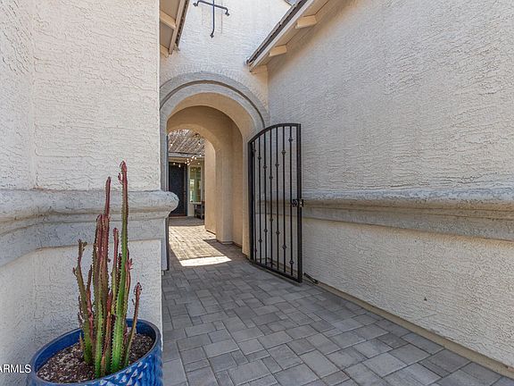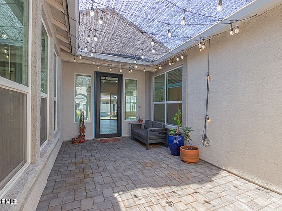 Owner/Agent. Better than new and priced to sell! Unique private gated courtyard entrance. Spacious living area that flows seamlessly into the kitchen. Both the breakfast nook and flex space situated behind the walk-in pantry are large enough to host formal dining. The master bed and bath is outfitted with a water closet, dual sinks, a large shower, and a spacious walk-in closet. Covered patio with an electric screen to block out the sun during the day for that indoor/outdoor living or enjoy the comfort of the electric fireplace and lifelike plant wall in the evening. Low maintenance backyard with pavers, turf, and a gorgeous pool with in-ground hydro jets to ease pool maintenance. Outdoor shower and storage shed conveniently located on side of home.