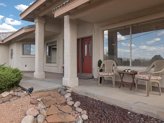 VIEWS, VIEWS, VIEWS. Move in to this marvelous well maintained home with great mountain views! Open floor plan with plenty of space and closets. The formal dining room could be used as an office, den or TV room. Wood burning fireplace for cozy nights during the Winter. Plenty of privacy peace and quiet on this serene street overlooking the mesas. Single story with a very private patio in back. All electric so no propane tank. Seller to provide home warranty to buyer upon sale.Hop on Hwy 17 - 20min to Sedona, 1.5hr to Phx