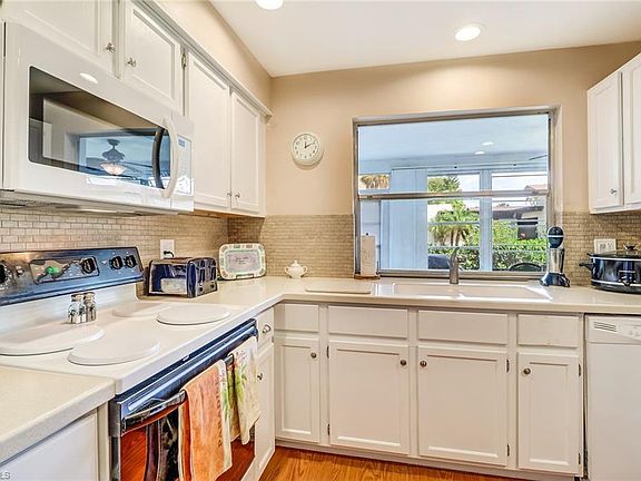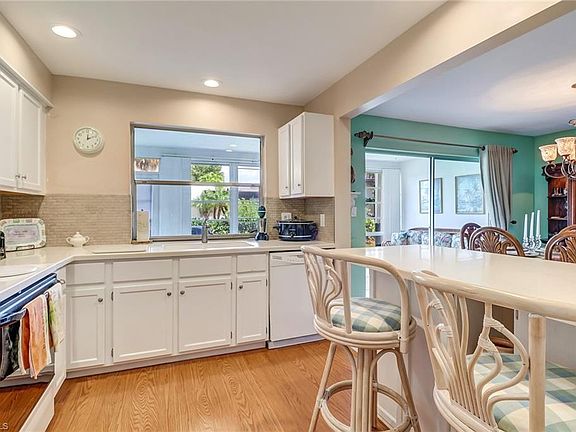 Investor Alert! This quaint 2 bedroom, 1.5 bath attached villa is located in the desirable community of Lakewood, just minutes from downtown Naples and the Pier! Lovely open outdoor patio area with mature landscaping for privacy and a covered screened lanai in the front of home, featuring two water fountains and a nice sitting area. Inside you will find newly updated kitchen cabinets, countertops and backsplash with large tile flooring throughout most of the home. NEWER ROOF and HVAC. Open floor plan feel with sliding glass doors that lead to the Florida room with casement windows- perfect for entertaining! Spacious bedrooms with master bedroom including an office nook-perfect size for a large desk! Half bath could easily be converted to a full bath. Within walking distance to restaurants, pharmacy, grocery store and Sugden Park. This quiet, public golf course community has no membership requirement and the course was just redone last year!