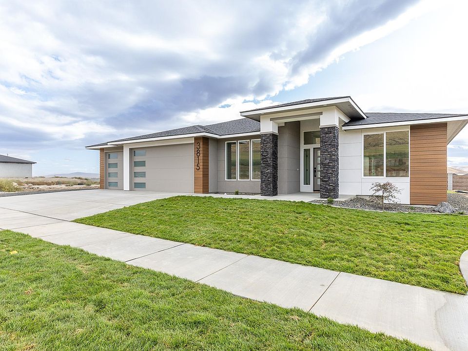MLS# 271489 Welcome home to 3815 Highview Street in Goose Ridge Estates! This great home built by Viktory Homes has so much to offer! Upon entering, you are instantly greeted by an abundance of natural light! The tall ceilings and open floorplan make this such an inviting home. The light and bright home office is located at the front of the home for quiet and privacy. Adjacent to the home office are two large guest rooms that share a bathroom and linen closet. The great room with stunning floor to ceiling fireplace, coffered ceilings and beautiful windows overlook the outdoor living space. Moving to the heart of the home, the beautiful kitchen with high end appliances, waterfall counter tops, exquisite finishes and ample storage make this a very practical space. The Master Suite is perfectly appointed in a spilt bedroom design for added privacy. The ensuite will be a stunning retreat with free standing soaker tub, large walk in shower, dual sinks, and walk in closet. Enjoy quite evenings on your covered patio soaking in the beautiful views this area has to offer! In addition...This home is also equipped with solar panels, front and backyard landscaping and a fire suppression system!