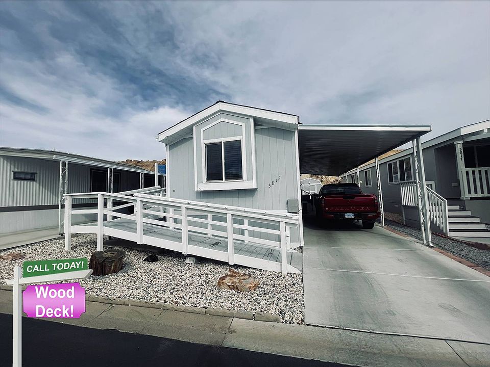 This is a personal property home that does not come with land. For manufactured homes bank financing is only available through specific companies. Contact us today to learn more about your financing options! Features: This charming home features 2 bedrooms and 1 bathroom, with a convenient laundry area located in the hallway. Enjoy year-round comfort with central heating and air conditioning. The home includes the following appliances: refrigerator, gas stove, dishwasher, washer, and dryer-all ready for your convenience. Inside, you'll find vaulted ceilings, dual ceiling fans, and dual-pane windows that enhance natural light and energy efficiency. The interior is finished with waterproof laminate flooring throughout, combining durability with modern style. Step outside to a beautiful deck, perfect for enjoying stunning sunsets, along with a carport, ramp and a storage shed for added functionality.