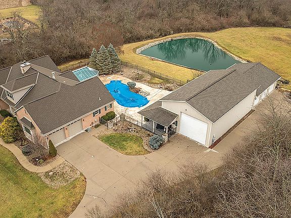 Open House Friday, 2/9/2024 5:00pm-7:00pm - Open House Saturday, 2/10/2025 1:00pm-4:00pm. Private Retreat 12 minutes from I-275 - In the 5-Star School System of Ross. Gated Entrance, 700 Foot Lane to Paradise! On 5 Acres! (Butler County Parks owns the land West/South off the property) Just under 5,000 sq. ft. Features Include: Figure 8 - 18' x 32' Salt Water Gunite Pool, Built-in Hot tub under the Glass Gazebo, 1/3 Acre Pond w/9' fountain Aerator, 2-Car Attached Garage, 3-Car Detached Garage, 49' x 29' x 20' Heated Pole Barn w/Office/Loft & Full Bathroom. The Gourmet Kitchen includes Newer Appliances, Quartz Counter-tops. Let's not forget one of the most important features: The Geothermal Heating/Cooling System Installed 2016 - 30 Year Life Expectancy with an average Heating & Cooling Bill between $800-$1,000 a Year!!! You will love the wildlife, the serenity, and the joy of calling 3815 Kirchling Home!