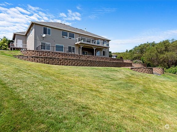 Welcome to this beautiful Sunnyslope daylight rambler on 1 acre, thoughtfully designed to capture the surrounding views. The open-concept great room allows for a seamless transition to enjoy the gourmet kitchen with hickory cabinetry and dining area which accesses a full-length deck with outdoor speaker system. Main level primary suite connects to the deck as well. 3 bdr's/2 baths and sitting room complete main floor. Lower level features media room with surround sound, oversized 4th bdr, office, laundry and an add'l 1.5 baths. Extensive lower patio is a wonderful space to enjoy the privacy this property offers overlooking a natural greenbelt with irrigation water.