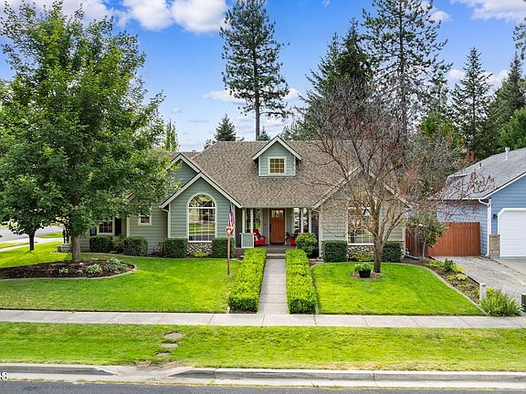 This stunning single-level home in prestigious Bentwood Park is both elegant and spacious! The 4+bedroom, 3-bath residence features an office or 5th bdrm , a bonus room above the garage, on a large .29-acre corner lot. Beautifully landscaped walkway welcomes you to a gorgeous front entry leading into the open-concept living area w vaulted ceilings. Central to this space is the warmth of a gas fireplace, adjacent to the expansive kitchen with granite countertops. A large dining area off the kitchen offers ample space for entertaining. The main-floor master suite includes a tiled shower and a separate deep soaking tub. Newly installed luxury carpet in the bedrooms and lower-level family room adds comfort, while LVP flooring enhances the main living area and kitchen. Private backyard features a pergola, spacious deck for entertaining, and a newer hot tub for relaxation. Additional highlights include a 14x22 Shop, RV parking with a large swing gate, and oversized garage for convenient winter access. Beautiful mature trees, flowers, and shrubs are meticulously landscaped with concrete borders. Enjoy views of Canfield Mountain from the front porch and the close proximity to the neighborhood park.