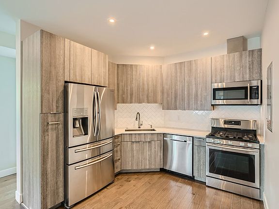 Stainless steel appliances, quartz countertops, and custom cabinetry