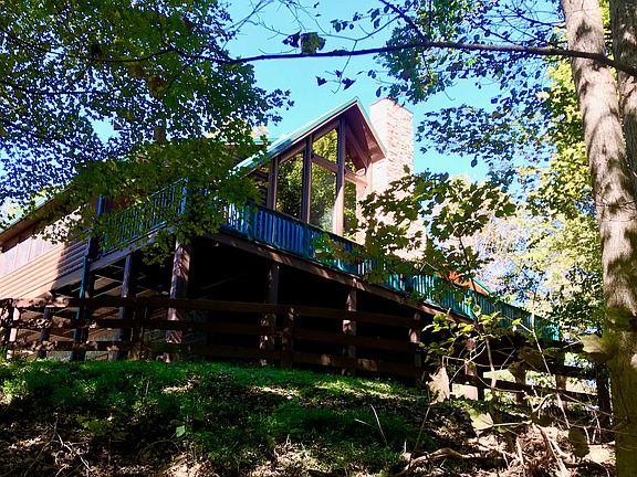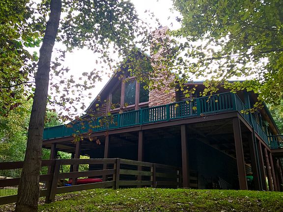 Mountain top hide away close to shopping and scenic drives. Rustic log home with huge beams, wood ceilings and walls.  Family room open to the kitchen with stacked stone fireplace and island. 1500 square feet of outdoor living space.