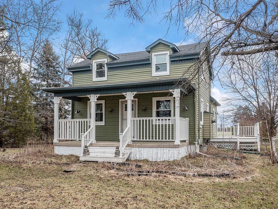 So much charm sitting on 2.25 acres! This updated 2story home has a great country, farmhouse feel. The eat-in kitchen is light & bright, w/ new stainless appliances & sliders out to the huge back deck. The living room is highlighted by the gas fireplace. Both full baths have been completely updated & are truly stunning! So many updates, including, mostly new windows & doors, newer roof, new water heater, pressure tank, water softener, electric panel, just to name a few. Relax & take it all in on the new front covered porch. Upstairs you will find 3 bedrooms w/a shared full bath. Huge 4 car detached garage, massive 90x40 building w/attached 72x18 additional building & 14" door, shed, fenced garden, tons of parking, & wrap around drive are just a few of the highlights that make this THE ONE!