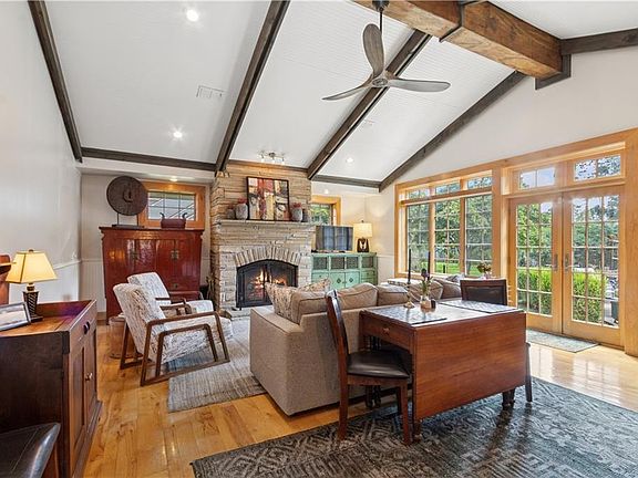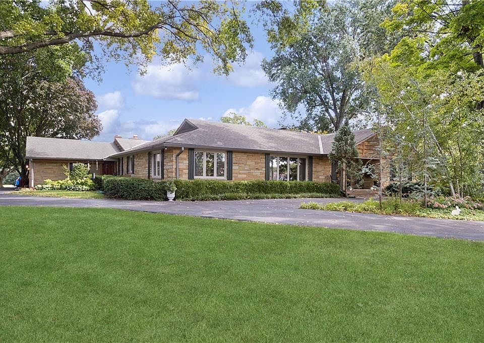 This beautiful mid-century home features twice cut random uncoursed sandstone masonry on the exterior and through the home. This rambling ranch is a tribute to Frank Lloyd Wright and an eye catcher as you enter Mission Hills. This home sits on .8 acre with beautiful mature trees. The Chef's kitchen opens to a large vaulted family room with a sandstone gas insert fireplace. Off of the kitchen is an entry to a massive sandstone screened porch featuring a wood burning fireplace and a slate radiant heated floor. From the porch you can open French doors into the office/library, which features a sandstone gas-insert fireplace and wet bar. Between the kitchen and the library/office is a half-bath and laundry room. The light filled Living room provides some of the finest sunsets and is adjacent to the formal dining room. The primary room also has a gas insert fireplace, walk in closets and radiant heated master bathroom floor.