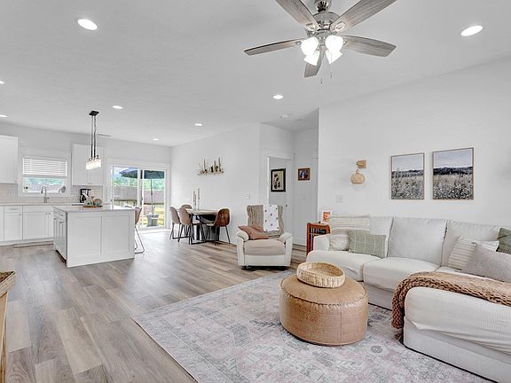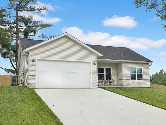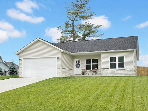 Welcome to 3815 W Raintree Dr — Where Comfort Meets Convenience! Situated on a desirable corner lot at North Deer Park Dr and Raintree Lane, this nearly new home offers the perfect blend of modern comfort and accessibility. Just minutes from downtown Elletsville, Bloomington’s north side, and I-69, you’ll love the ease of commuting and access to amenities. Step onto the inviting covered front porch, and as you enter, you’ll immediately feel the warmth of natural light that fills the open, split-bedroom floor plan. The spacious living area flows effortlessly into the kitchen and dining space, making it ideal for both everyday living and entertaining. The kitchen is a showstopper, featuring quartz countertops, stylish shaker cabinets, stainless steel appliances, and a center island with bar seating—perfect for casual meals or gathering with friends and family. The primary suite is a private retreat, offering generous space to relax, a walk-in closet with ample storage, and a luxurious en-suite bath complete with a tiled shower and quartz vanity. Conveniently located just outside the primary suite is the laundry room, which includes extra storage and direct access to the attached two-car garage. On the opposite side of the home, you'll find two additional bedrooms and a beautifully appointed full bath, echoing the same level of quality with quartz finishes and a tiled shower. Step outside to enjoy the new privacy fence enclosing the spacious .28-acre yard—ideal for entertaining, gardening, or simply relaxing in your own outdoor oasis. This home truly has it all—modern features, a thoughtful layout, and a location that keeps you connected