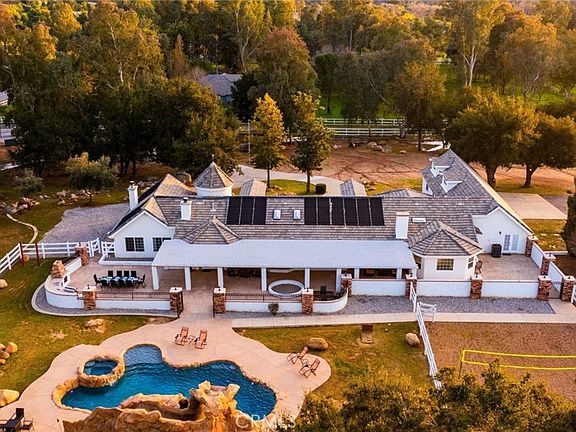 IMAGINE WHAT IT WOULD BE LIKE TO OWN THIS MAGICAL ESTATE RETREAT SURROUNDED BY OAK TREES LOCATED IN THE STUNNING COMMUNITY OF LA CRESTA. The property lies on 5 acres (approx). This estate home is also an Airbnb and is completely fenced. A creek also runs alongside the property at the bottom of the hill, adding to the dynamic and beautiful landscape of La Cresta. There is also an additional parcel included in the sales price, which also includes plans for a 5Br, 3Ba, 5,012 sqft. PLANS ONLY INCLUDED IN SALE! Both the home and vacant lot are approx. 5 acres each, for a total of 10 acres. This newly remodeled vacation home is a licensed Airbnb and has been in operation for over 1 year. Escape to this gorgeous Wine Country retreat for an unforgettable experience! The home has 5 bedrooms and 10 beds designed to accommodate up to 20 guests, making it the ideal place for large group getaways. The home has a game room with a pool table, arcade games, and a large flat-screen TV. For a more relaxed atmosphere, enjoy the oversized sofa in the living area or play a game of poker with friends. The kitchen is fully equipped for any meal you can imagine. Dine outdoors on the patio or cozy up inside for a meal with family and friends. The patio has a BBQ area for those that like to grill while taking in the breathtaking scenery around the property. The master suite has a King-sized bed, built-in trundle beds, and a luxurious bathroom with a stand-up shower and jetted tub. You'll find two guest bedrooms with bunk beds, each featuring a loft area. The rear bedroom serves as a cozy lounge area with a pull-out bed. Property has cross fencing and corrals. Bring your horses, dirt bikes, ATVs, and other outdoor toys to enjoy the wide-open space, as well as equestrian trails for horseback riding and hiking. Discover your own private haven in the backyard, with a stunning rock pool and spa with a waterfall and waterslide for hours of fun or relaxation. The backyard has a volleyball court and horseshoe pit for fun & games. The backyard has 3 firepits for evening gatherings. The home has a 6-car garage, making parking easy for everyone. Entire home is solar-powered. This property offers the perfect balance of fun and tranquility, while also providing a yearly income. Situated in a highly upscale community offering many amenities, dining & entertainment! This is a one-of-a-kind opportunity! Schedule your showing today!