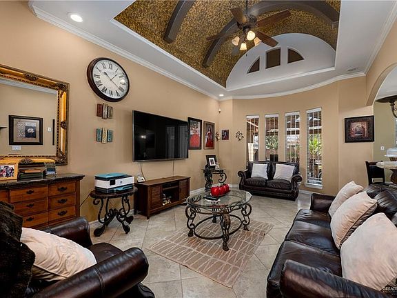 Welcome to Oakland Village, where comfort, space, & convenience meet. This beautifully maintained 4-bed, 3-bath home offers a thoughtful layout & elegant features. Located minutes from shopping, dining, & entertainment, it’s also near Vackar Stadium, Los Lagos Golf Course, & the newly announced Guerlian Plaza—a growing hub for Edinburg’s best attractions. Inside, the open & airy design creates a welcoming flow throughout. The living area features high decorative ceilings & tile flooring that add a touch of sophistication. The formal dining room is perfectly positioned off the spacious kitchen that offers plenty of cabinetry & space for cooking & entertaining. The primary suite provides a relaxing retreat with dual closets, a double vanity, & walk-in shower. Outside, enjoy a large backyard that’s ready for entertaining with an extended covered patio; perfect for BBQs or quiet evenings. This home’s balance of location, comfort, & thoughtful design makes it one worth seeing in person.