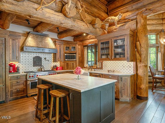 Surrounded by pine and aspen forest, this residence was exceptionally built and thematically designed throughout, emphasizing the craftsmanship and stunning log features, creating a luxurious mountainside retreat.