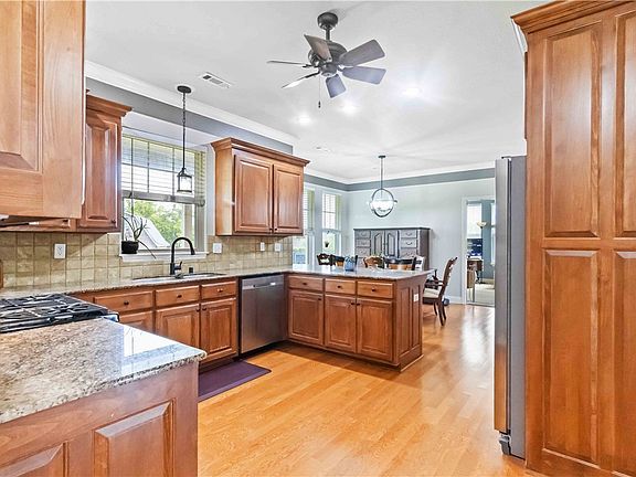 At the end of a quiet cul-de-sac, this beautiful home sits on a .33-acre private lot with brand-new fencing. The backyard offers both privacy and functionality, featuring a covered patio. Inside, the main level welcomes you with a dedicated foyer/entry with a coat closet, a large living room, a spacious kitchen features abundant cabinets, a pantry, and extra storage, making it a cook’s dream. Adjacent, the utility room provides an entire wall of built-in storage and offers direct access to the backyard. The dining room also opens to the outdoor space. A convenient half bath on the main level is ideal for guests. A second living area with pocket doors adds charm and versatility, featuring large windows, built-ins, and a cozy gas log fireplace. This flexible space can serve as a playroom, reading nook, or even a formal dining room. Upstairs, you’ll find four bedrooms and two full bathrooms. The layout makes it easy to keep bedrooms comfortable and personal without the pressure of constant tidiness. :)