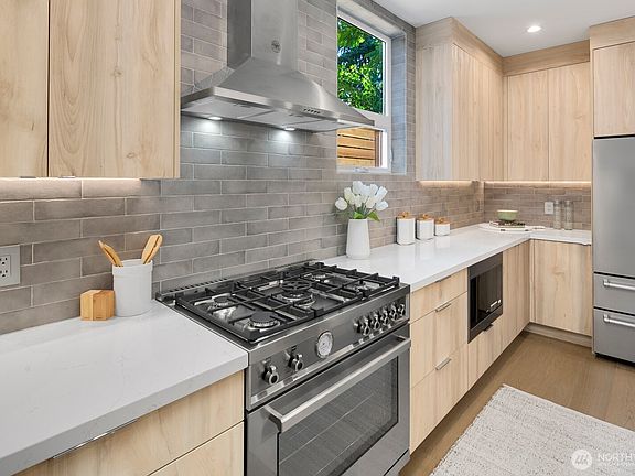 This modern new construction 2 BD Detached Home + Carriage House in Wedgwood has it all. The home features an open-concept living and dining area with an island kitchen showcasing a high-end Bertazzoni appliance package. A sliding glass wall opens to a private, fully fenced patio and yard. Upstairs, you’ll find a bedroom, full bath, and your primary suite. Adding versatility, the detached garage offers additional space above with its own full bath and kitchenette—perfect for guests, work, or creative pursuits.