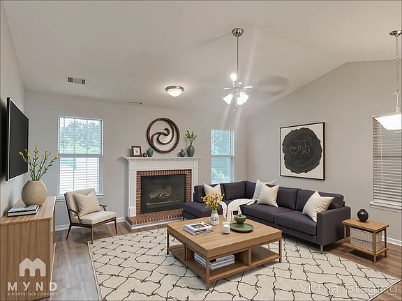 Welcome to 3816 Rex Mill Square, a stunning 3-bedroom, 2-bathroom home offering 1285 sq ft of meticulously designed living space. The living room boasts high ceilings and a decorative fireplace, creating an inviting atmosphere. The kitchen is a chef's delight, featuring a full suite of stainless steel appliances, along with a convenient breakfast bar. The primary bedroom is a serene retreat with high ceilings, a spacious walk-in closet, and an attached bath complete with a glass-enclosed shower and vanity sink. An adjacent sitting room provides direct access to a charming patio, perfect for relaxing outdoors. This smart home is equipped with a Smart Lock, Smart Thermostat, Smart Hub, and Motion Sensor for enhanced security and convenience, and includes a dedicated laundry room with washer/dryer hookups. This fantastic property is ideally located near I-675, residents will appreciate close proximity to various shopping and dining options, as well as local parks and green spaces. Don't miss out on this fantastic opportunity!