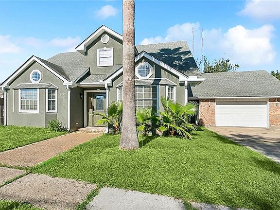 Move-in ready & full of charm in the heart of Chalmette! Freshly painted inside and out, this light-filled beauty features soaring ceilings, a dreamy layout with the primary bedroom downstairs, and open living spaces. Spacious double car garage, covered patio, and a location just around the corner from Val Riess Park! Don't miss it, priced to move!