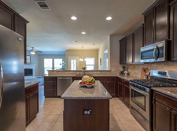 Fabulous opportunity to own this beautiful one story light filled home with Spacious kitchen boasting Granite counters w-breakfast bar, tile backsplash, SS appliances and plenty of working room with center island. Family room is anchored by a wood burning fireplace and wall of windows overlooking the backyard & patio. Owners Suite with Spa-like bath complete with granite, dual sinks, garden tub & shower with tile-inlay. Upgrades to include, Full sprinklers, gutters, energy efficient HVAC and 30 year roof with radiant barrier. Granite in all bathrooms. Extended covered patio overlooking large backyard perfect for pool, pets or play! Walk to community play area and park. Community pool with splash park and slide.